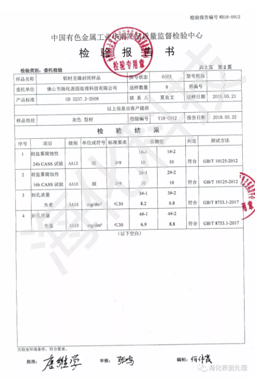 LW-99無鎳無氟中溫封閉劑是一種高濃度性的無色或淺琥珀色液體產品,對于鋁的陽極氧化膜有很好的封閉效果。該產品不含重金屬,這不僅能解決廢水處理的重金屬問題,還可以避免含鎳鹽封孔時間氧化膜對鎳鹽的吸收而導致的表面發綠現象。該產品適宜于透明膜、拋光、電解著色氧化膜的封閉。無鎳封孔優點是操作簡單、環保、節省水用量,不用對廢水中的氟、鎳兩種有害離子進行處理,從而達到降低成本的目的。
